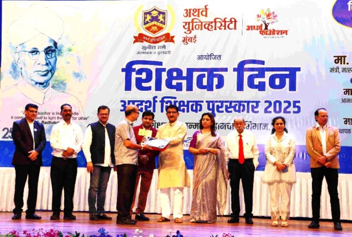 चंडीगढ़ । अथर्व फाउंडेशन के सहयोग से अथर्व यूनिवर्सिटी मुंबई ने शुक्रवार भव्य शिक्षक दिवस समारोह और शिक्षक पुरस्कार समारोह का आयोजन किया। इस अवसर पर, मुंबई क्षेत्र के 100 शिक्षकों को उनके शिक्षा में उत्कृष्ट कार्य, समर्पण और विद्यार्थियों के जीवन पर डाले गए सकारात्मक प्रभाव के लिए शिक्षक पुरस्कार से सम्मानित किया गया।