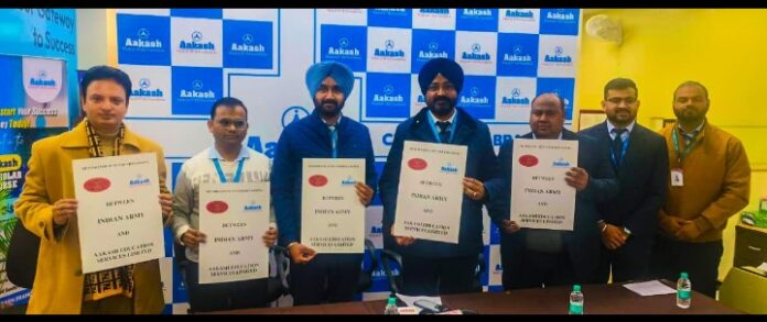 इस एमओयू के तहत, आकाश एजुकेशनल देशभर में स्थित अपने सभी केंद्रों और शाखाओं में प्रवेश लेने वाले भारतीय सेना के विद्यार्थियों को विशेष लाभ प्रदान करेगा। यह समझौता भारतीय सेना के कर्नल, सेरेमोनियल एंड वेलफेयर 3&4 और आकाश एजुकेशनल सर्विसेज लिमिटेड ( एईएसएल ) के डॉ. यश पाल, चीफ एकेडमिक एंड बिजनेस हेड, दिल्ली-एनसीआर द्वारा हस्ताक्षरित किया गया।