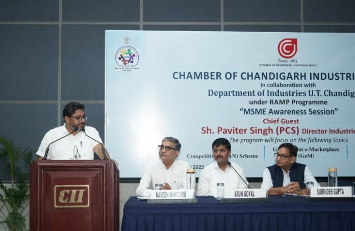 चण्डीगढ़। चैंबर ऑफ चंडीगढ़ इंडस्ट्रीज़ ( सीसीआई ) ने उद्योग विभाग, चण्डीगढ़ (सूक्ष्म, लघु और मध्यम उद्यम मंत्रालय के अंतर्गत) के सहयोग से रेज़िंग एंड एक्सेलरेटिंग एमएसएमई परफॉर्मेंस (रैम्प) विषय पर एक सेमिनार का आयोजन किया। इस सेमिनार का उद्देश्य एमएसएमई क्षेत्र को जागरूकता और प्रमुख सरकारी योजनाओं व सहयोग तंत्रों तक पहुँच प्रदान कर सशक्त बनाना था।