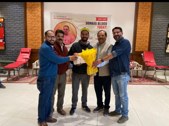 चंडीगढ़ : राष्ट्रीय स्वयंसेवक संघ (RSS) के वर्तमान सरकार्यवाह दत्तात्रेय होसबोले जी के जन्मदिवस के उपलक्ष्य में आज वाईआरएस एंटरप्राइजेज द्वारा एक भव्य एवं राष्ट्रनिष्ठा से प्रेरित रक्तदान शिविर का आयोजन चंडीगढ़ क्लब में किया गया।शिविर में युवाओं,स्वयंसेवकों एवं स्थानीय नागरिकों ने उत्साहपूर्वक रक्तदान करते हुए समाज के प्रति अपनी जिम्मेदारी निभाई।