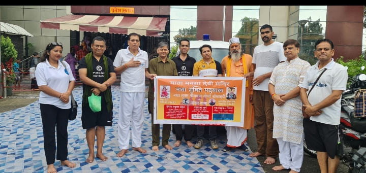 न्यू चंडीगढ़ । रविवार सुबह, नशा मुक्त युवा मोर्चा सोसाइटी और गुड लाइफ मिशन द्वारा न्यू चंडीगढ़ से शुरू की गई 21 किलोमीटर लंबी नशा मुक्ति पदयात्रा पंचकूला स्थित माता मनसा देवी मंदिर में श्रद्धा और उत्साह के साथ संपन्न हुई। पैदल यात्रा को चिकित्सा के रूप में प्रचारित करने वाले अर्जन सिंह उर्फ वॉकर बाबा ने इस पदयात्रा में विशेष रूप से भाग लिया। सुबह 4 बजे सभी पैदल यात्री ईको सिटी स्थित गुड लाइफ+ बेस कैंप पर एकत्रित हुए और नाश्ते के बाद सुबह 5:30 बजे पदयात्रा शुरू हुई।