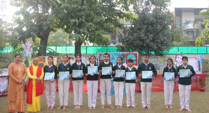स्कूल की डायरेक्टर माननीय साध्वी नीलिमा विश्वास जी ने विद्यार्थियों को संबोधित करते हुए कहा कि जीवन में लक्ष्य जरूर बनाओ परंतु उस लक्ष्य तक पहुंचने का मार्ग ईमानदारी और कर्मशील होना चाहिए।कक्षा पांचवी से आठवीं तक के विद्यार्थियों ने गीता जयंती के अवसर पर गीता श्रीमद् भगवद गीता से संबंधित भाषण व श्लोक सुनाएं।