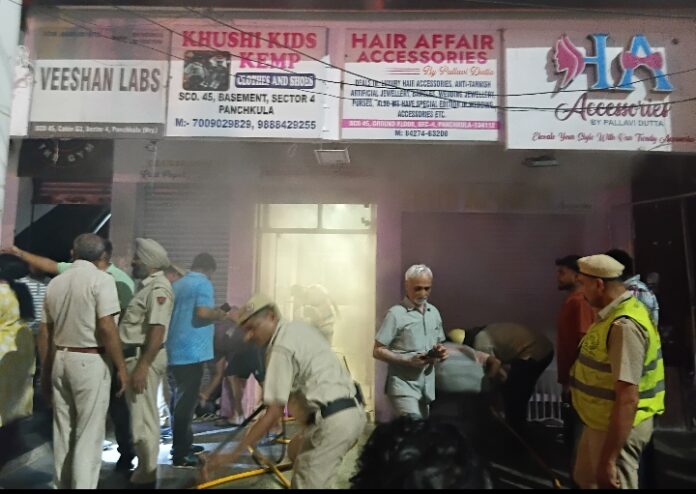 पंचकूला। सेक्टर 4 की मार्किट में एक कपड़ों के शोरूम में मंगलवार रात को अचानक आग लग गई। आग बेस मेंट में लगना शुरू हुई जो अन्य केबिन में फैलती चली गई। शोरूम में अन्य विक्रेता अपना कारोबार करते हैं। हालांकि दमकल विभाग की गाड़ियों ने मौके पर पहुंच कर आग पर काबू पाने प्रयास शुरू कर दिए।