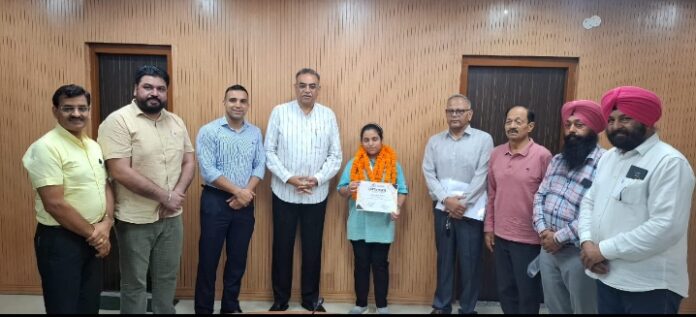 सिटीन्यूज़ नॉउ, चण्डीगढ़। गवर्नमेंट पॉलीटेक्निक कॉलेज फॉर वुमेन, सेक्टर 10 की छात्रा नेमत कौर को सेक्टर 42 स्थित स्पोर्ट्स काम्प्लेक्स में भाजपा नेता संजय टंडन, सोरव कुमार अरोड़ा, डायरेक्टर स्पोर्ट्स और महेंदर सिंह, जॉइंट डायरेक्टर, स्पोर्ट्स ने फूल माला पहना कर सम्मानित किया।
