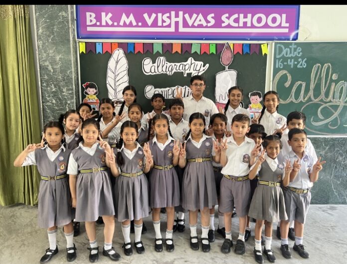 पंचकुला: बी के एम विश्वास स्कूल में विद्यार्थियों की लेखन सुधार को प्रोत्साहित करने के उद्देश्य से कैलिग्राफी प्रतियोगिता का सफल आयोजन किया गया। इस प्रतियोगिता में कक्षा 1 से 8 तक के विद्यार्थियों ने उत्साहपूर्वक भाग लिया।प्रतियोगिता के दौरान बच्चों ने सुंदर लेखन कला का उत्कृष्ट प्रदर्शन किया, जिससे उनकी सृजनात्मकता और एकाग्रता का परिचय मिला।