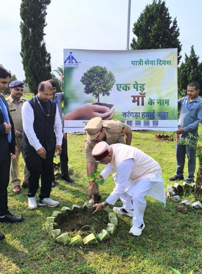 कांगड़ा/हिमाचल प्रदेश। राज्यपाल शिव प्रताप शुक्ल ने आज भारतीय विमानपत्तन प्राधिकरण द्वारा आयोजित यात्री सेवा दिवस समारोह के तहत जिला कांगड़ा के गग्गल हवाई अड्डे के परिसर के हर्बल गार्डन में पौधरोपण किया। यह पौधरोपण अभियान पर्यावरण संरक्षण और हरित आवरण को बढ़ावा देने सहित बुनियादी ढांचे के विकास के महत्त्व को रेखांकित करता है।