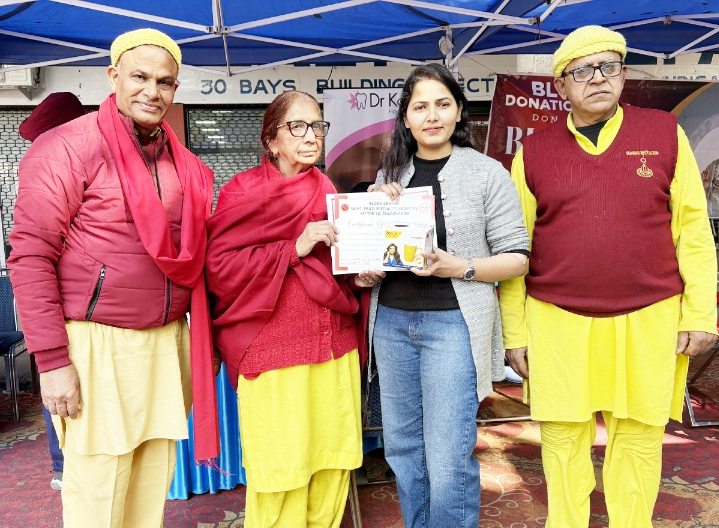 चंडीगढ़: ठंड की वजह से अस्पतालों में आई रक्त की कमी को पूरा करने के लिए विश्वास फाउंडेशन पंचकूला व इंडियन रेडक्रॉस यूटी चंडीगढ़ द्वारा मार्केट सेक्टर 17बी चंडीगढ़ में रक्तदान शिविर आयोजित किया गया। शिविर सुबह 10:00 बजे शुरू हुआ और दोपहर बाद 3:30 बजे तक चला।