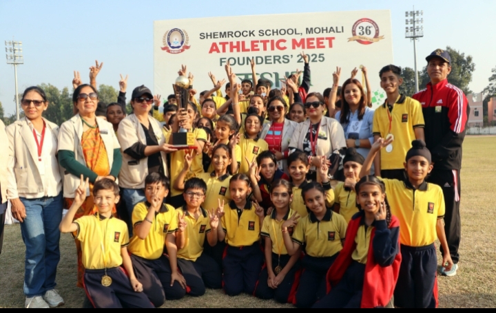 मोहाली: शैमरॉक सीनियर सेकेंडरी स्कूल, सेक्टर 69 की वार्षिक एथलेटिक मीट 2025 का दिन अनुशासन, गति और गौरव के नाम रहा। दिन की शुरुआत शानदार मार्च पास्ट और एक उत्साहपूर्ण उद्घाटन समारोह के साथ हुई। कक्षा 3 से 5 तक के बच्चों ने पूर्ण समरूपता और जोश के साथ कदम से कदम मिलाए, जहाँ हर पंक्ति अभ्यास, धैर्य और अटूट दृढ़ संकल्प की कहानी कह रही थी।