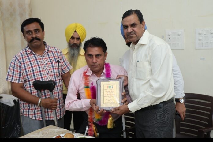 चंडीगढ़। समाजसेवी एवं स्टेट अवार्डी हरमेल कुहाड़ी, जो फिजिकली हैंडीकैप्ड एसोसिएशन, चण्डीगढ़ के महासचिव भी हैं, को उनकी सेवाओं के लिए आईटीआई एम्प्लाइज यूनियन, सेक्टर 28 द्वारा सम्मानित किया गया। यह सम्मान यूनियन की ओर से आईटीआई, सेक्टर 28 के प्रिंसिपल सी. अरुण कुमार ने प्रदान किया।